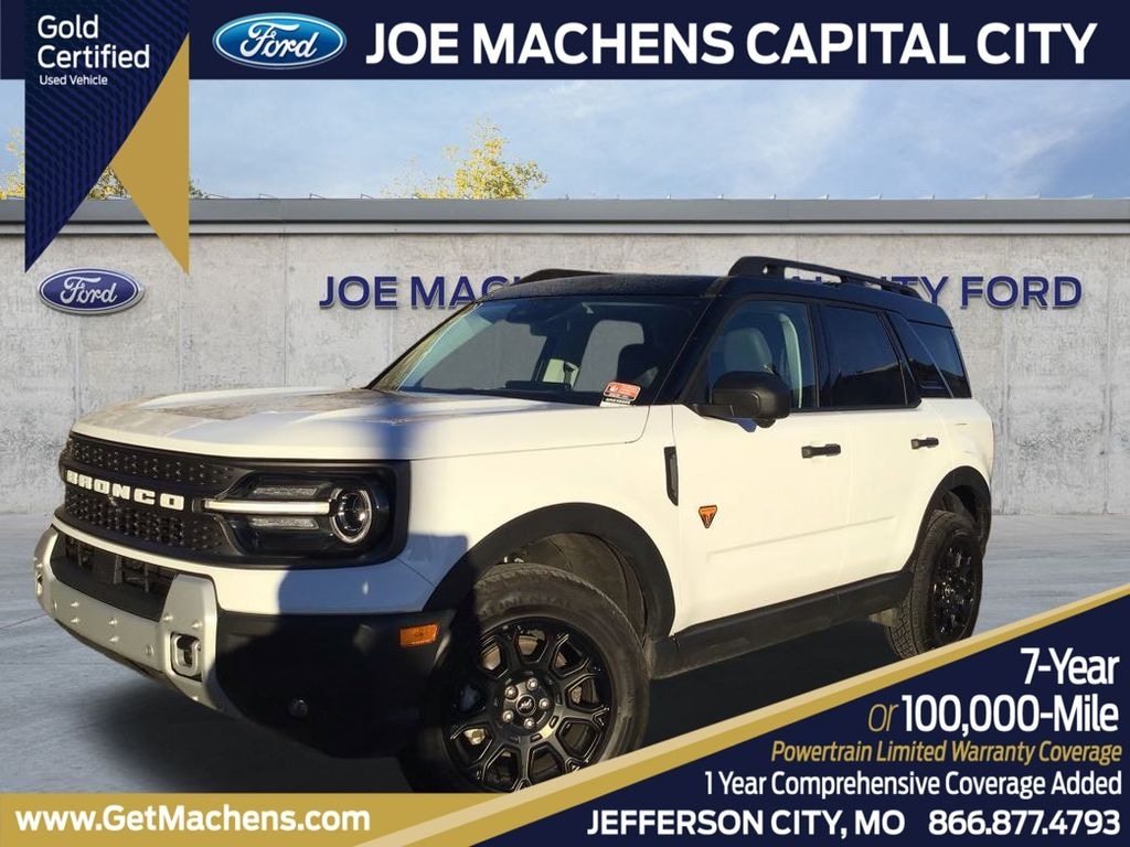 Oxford White 2025 Ford Bronco Sport Badlands 4WD 8-Speed Automatic EcoBoost 2.0L I4 GTDi DOHC Turbocharged VCT