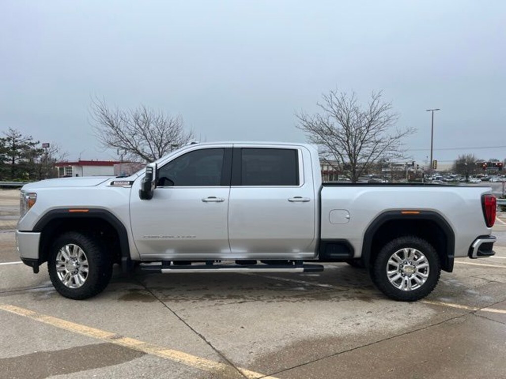 2020 GMC Sierra 2500HD Denali Quicksilver Metallic 10-Way Power Driver Seat Adjuster w/Lumbar, 10-Way Power Passenger Seat Adjuster w/Lumbar, 12-Volt Rear Auxiliary Power Outlet, 120-Volt Bed Mounted Power Outlet, 120-Volt Instrument Panel Power Outlet, 1st & 2nd Row All-Weather Floor Liner (LPO), 2 USB Ports, 2 USB Ports (1st Row), 2-Speed Active Transfer Case, 2nd Row Dual USB Charge-Only Ports, 4-Wheel Disc Brakes, 4G LTE Wi-Fi Hotspot Capable, 6" Rectangular Chromed Tubular Assist Steps, 7 Speakers, Air Conditioning, Alloy wheels, AM/FM radio: SiriusXM, Apple CarPlay/Android Auto, Auto High-beam Headlights, Auto-dimming door mirrors, Auto-dimming Rear-View mirror, Automatic Emergency Braking, Automatic temperature control, Bed View Camera, Black Front & Rear Molded Splash Guards (LPO), Bose Premium 7 Speaker Sound System, Brake assist, Bumpers: body-color, Chrome Recovery Hooks, Compass, Compass Located In Instrument Cluster, Deep-Tinted Glass, Delay-off headlights, Denali Ultimate Package, Driver Alert Package I, Driver Alert Package II, Driver door bin, Driver Memory, Driver vanity mirror, Dual 220-Amps Primary/170-Amps Aux Alternators, Dual front impact airbags, Dual front side impact airbags, Electric Rear-Window Defogger, Electrical Lock Control Steering Column, Electronic Stability Control, Engine Block Heater, Exhaust Brake, Floor-Mounted Center Console, Following Distance Indicator, Forge Perforated Leather-Appointed Front Seat Trim, Forward Collision Alert, Front anti-roll bar, Front Bucket Seats, Front Center Armrest, Front dual zone A/C, Front fog lights, Front License Plate Kit, Front reading lights, Front wheel independent suspension, Fully automatic headlights, Garage door transmitter, Genuine wood console insert, Genuine wood door panel insert, GMC Connected Access Capable, GMC Protection Package (LPO), Gooseneck/5th Wheel Package, Gooseneck/5th Wheel Prep Package, HD Radio, HD Rear Vision Camera, HD Surround Vision w/2 Trailer View Camera Provisions, Heated & Ventilated Front Bucket Seats, Heated 2nd Row Outboard Seats, Heated door mirrors, Heated Driver & Front Outboard Passenger Seats, Heated front seats, Heated rear seats, Heated steering wheel, Heavy Duty Front Spring/Camper Package, Heavy-Duty 80 Amp Battery, Hill Descent Control, Hitch Guidance w/Hitch View, Illuminated entry, In-Vehicle Trailering System App, Integrated Trailer Brake Controller, IntelliBeam Automatic High Beam On/Off, Keyless Open & Start, Lane Change Alert w/Side Blind Zone Alert, Lane Departure Warning System, LED Cargo Area Lighting, LED Smoked Amber Roof Marker Lamps, Low tire pressure warning, Manual Tilt-Wheel/Telescoping Steering Column, Memory seat, Multicolor 15" Diagonal Head-Up Display, MultiPro Audio System by Kicker, Navigation System, Occupant sensing airbag, Off-Road Suspension, OnStar & GMC Connected Services Capable, Outside temperature display, Overhead airbag, Overhead console, Panic alarm, Passenger door bin, Passenger vanity mirror, Pickup Box, Polished Exhaust Tip, Power Door Locks, Power door mirrors, Power driver seat, Power Front Passenger Windows w/Express Up/Down, Power passenger seat, Power Rear Windows w/Express Down, Power Sliding Rear Window w/Defogger, Power steering, Power Sunroof, Power windows, Power Windows w/Driver Express Up/Down, Preferred Equipment Group 5SA, Premium audio system: Premium GMC Infotainment System, Radio: Premium GMC Infotainment Sys w/Navigation, Rear Camera Mirror, Rear Cross Traffic Alert, Rear reading lights, Rear seat center armrest, Rear step bumper, Rear Wheelhouse Liners, Rear window defroster, Remote keyless entry, Remote Vehicle Starter System, Safety Alert Seat, Security system, Signature Denali Grille, SiriusXM w/360L, Speed control, Speed-sensing steering, Split folding rear seat, Spray-On Pickup Box Bed Liner w/Denali Logo, Steering Wheel Audio Controls, Steering wheel mounted audio controls, Tachometer, Technology Package, Telescoping steering wheel, Tilt steering