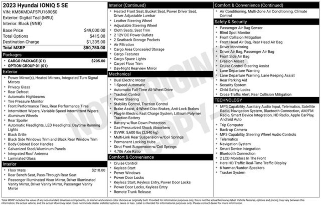 - Fuel economy combined (kWh): 34 kWh/100m