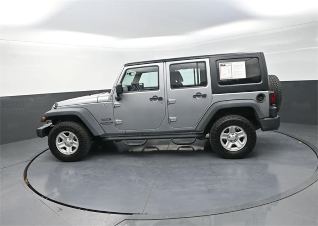 Wrangler Unlimited Sport, 4D Sport Utility, 5-Speed Automatic, 4WD, Billet Metallic Clearcoat, Black Interior Cloth, Chrome/Leather Wrapped Shift Knob, Connectivity Group, Leather Wrapped Steering Wheel, Quick Order Package 24C, Remote USB Port, Tire Pressure Monitoring Display, Uconnect Voice Command w/Bluetooth, Vehicle Information Center.