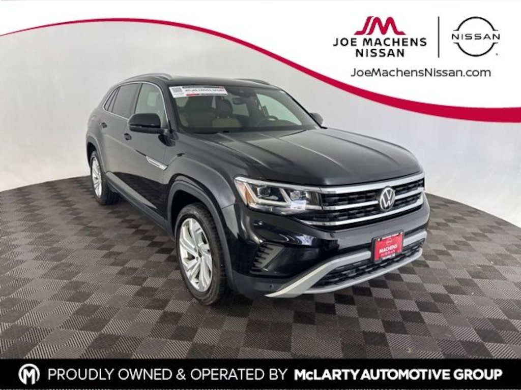 CARFAX One-Owner. Deep Black 2021 Volkswagen Atlas Cross Sport 2.0T SEL AWD 8-Speed Automatic with Tiptronic 2.0L TSI Atlas Cross Sport 2.0T SEL, 4D Sport Utility, 2.0L TSI, 8-Speed Automatic with Tiptronic, AWD, Deep Black, Dark Beige Artificial Leather.
